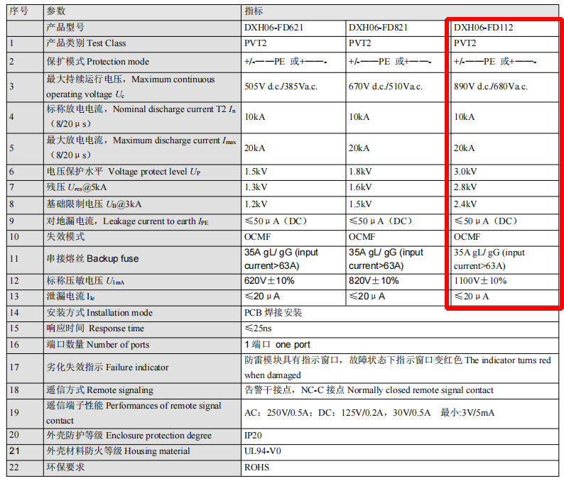 • DXH06-FD112          10-20kA 交流680V直流890V     中普PCB板載防雷器