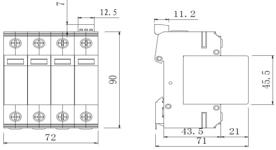 劣化失效指示 防雷模塊具有指示窗口,故障狀態(tài)下指示窗口變紅色
