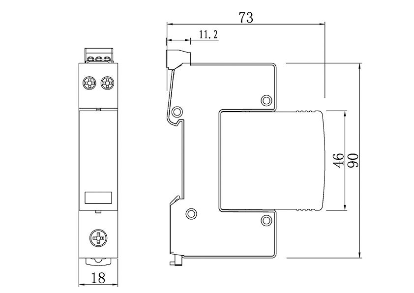 外形尺寸(不含接線端子) 90mm×18mm×73mm