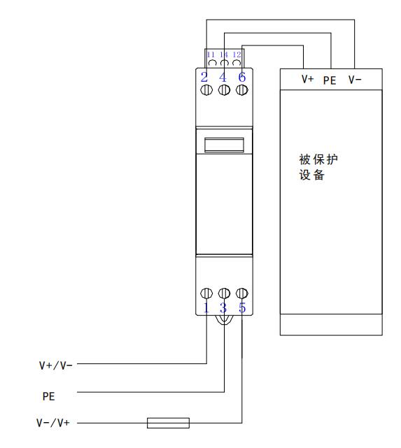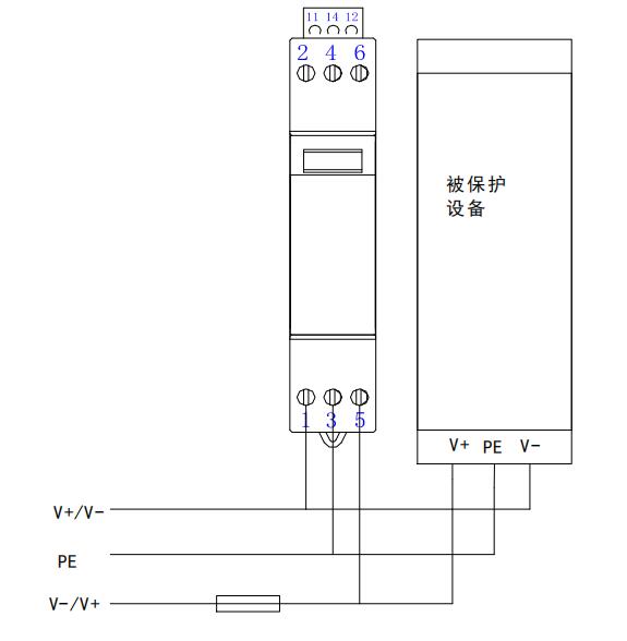 6.1 .DXH06-MP-DS 型電涌保護(hù)器可采用最好采用如圖(3- 1A) 所示的串聯(lián)形接線方式,當(dāng)受實際條件所限不易實現(xiàn)串聯(lián)形接線時,也可采用如圖 (3- 1B) 所示的常規(guī)的直接并聯(lián)接線,為實現(xiàn)更好的防護(hù)效果,當(dāng)采用直接并聯(lián)接線時,接線應(yīng)盡量短,總長度應(yīng)控制在 0.5m 以內(nèi)。