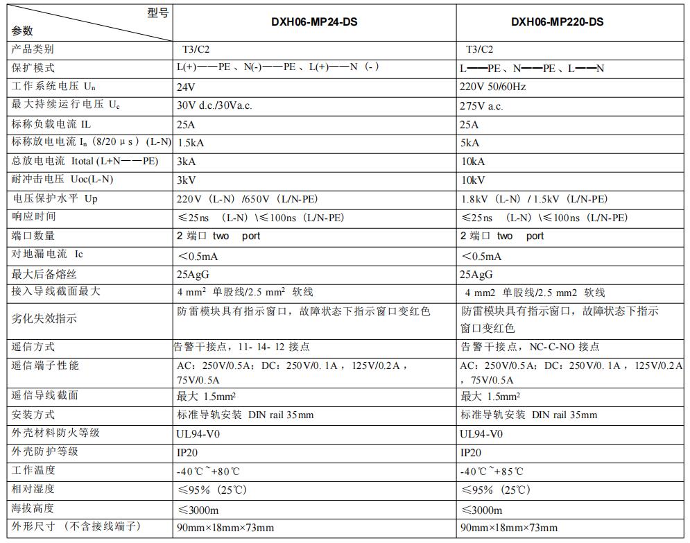 DXH06-MP-DS          帶遙信 24V/220V        中普低壓電源防雷器