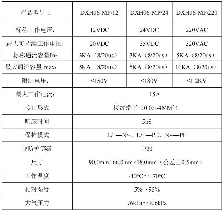 DXH06-MP系列          3-10kA 12V/24V/220V        中普通用交直流防雷器