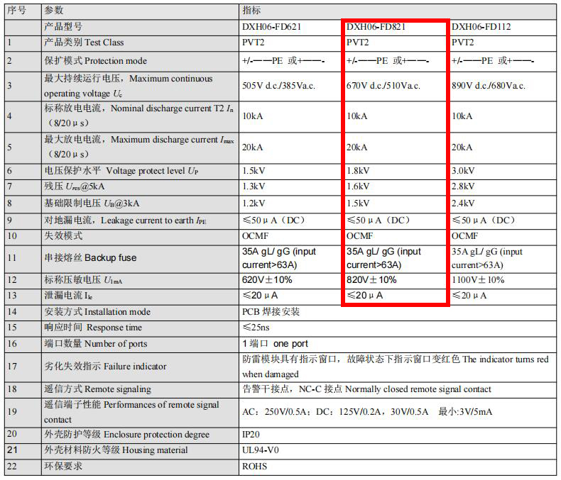 • DXH06-FD821          10-20kA 交流510V直流670V     中普PCB板載防雷器