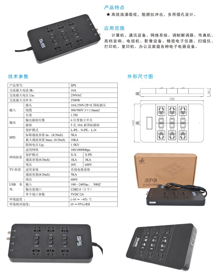 湖南中普 ZP 防雷插座 USB快充 獨(dú)立開關(guān) 家用電器保護(hù) SPS