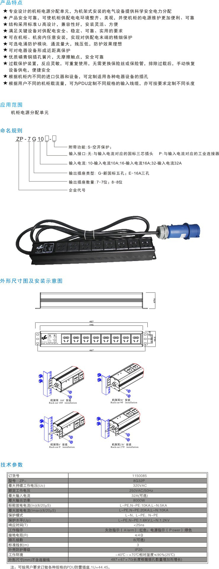 PDU防雷插座(機架配電單元)ZP-8G32P